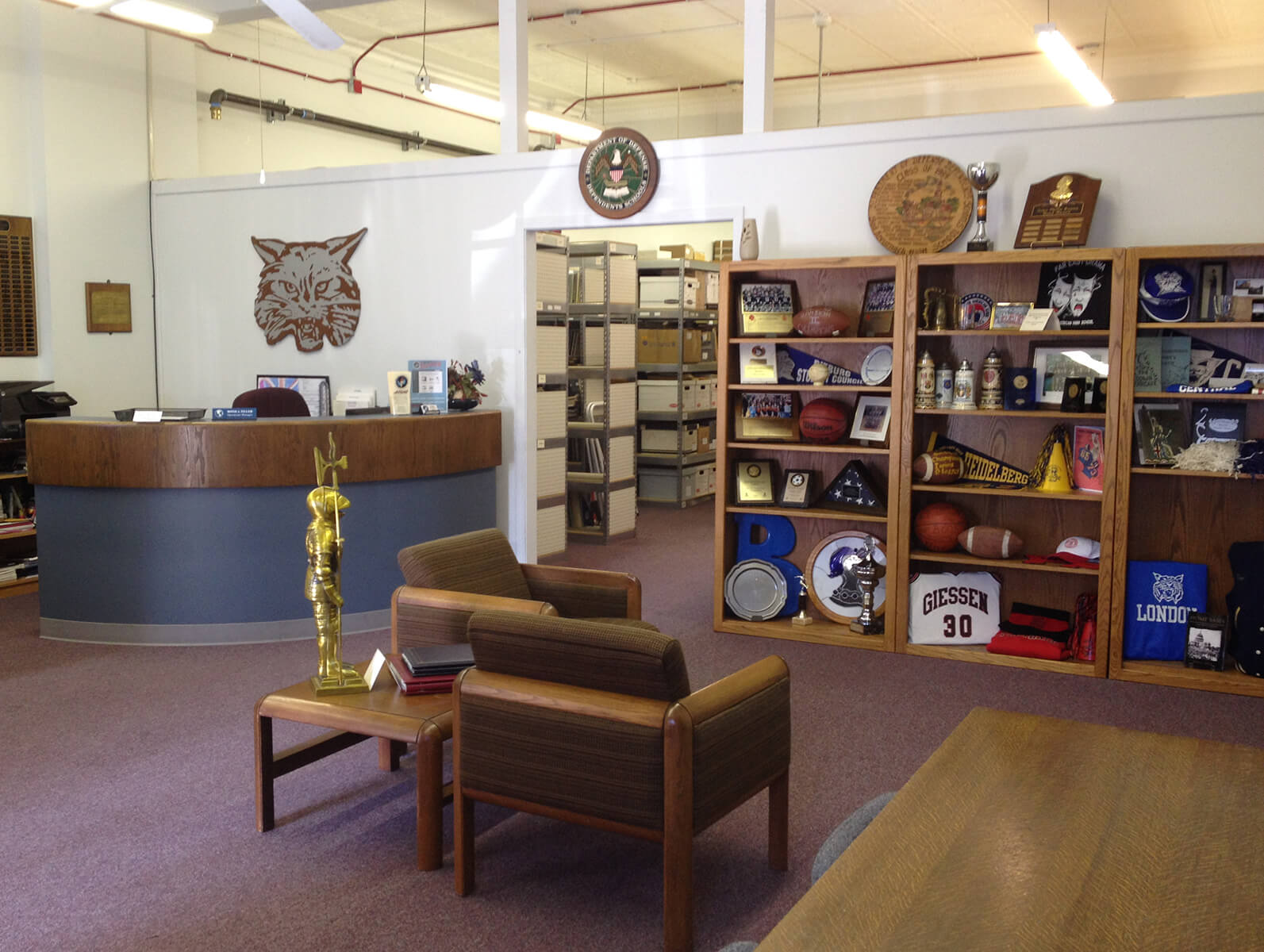 Over the next several months the interior of 704 was redone, putting up a wall to separate the office and small display area from the archive storage area, painting, acquiring new furniture, etc. In April the furniture, supplies and archives were moved from the rental property to the current office. On April 29, 2005 we held the ribbon cutting ceremony officially opening the office with board members, local AOSHS members and city officials in attendance. The following issue of the Quarterly featured the event.