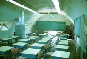 The Pacific Middle campus contained rows of World War II quonset huts, all numbered as Temporary but sturdily built to withstand typhoon winds. Unlike the quonsets in Turkey, my previous assignment, these sat on concrete block walls several feet above ground level and most faced the east allowing cooling ocean breezes from across the street to blow through. Only the library and offices were air-conditioned.